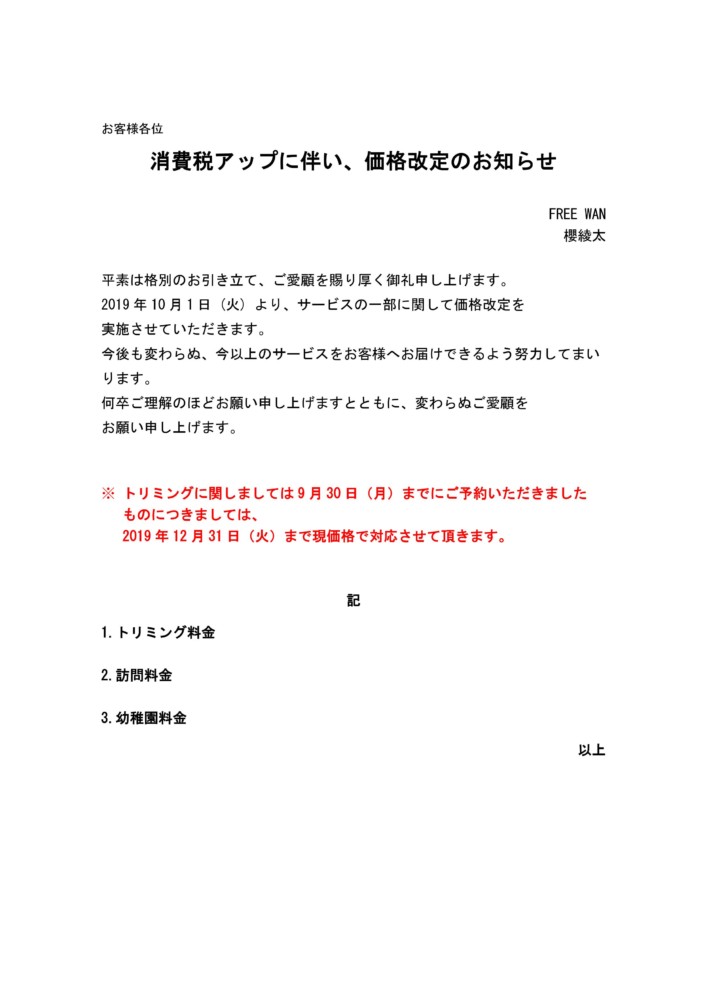 > お知らせ >価格改訂のお知らせ