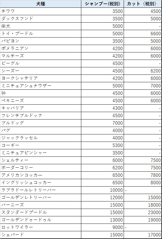 シャンプーのみはシャンプーコースの半額料金となります