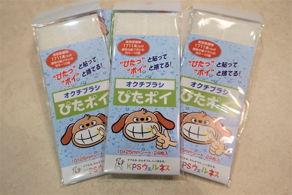 オクチブラシぴたポイというシールタイプで指につけて歯磨きが出来る物を使って歯磨きを行なっています。