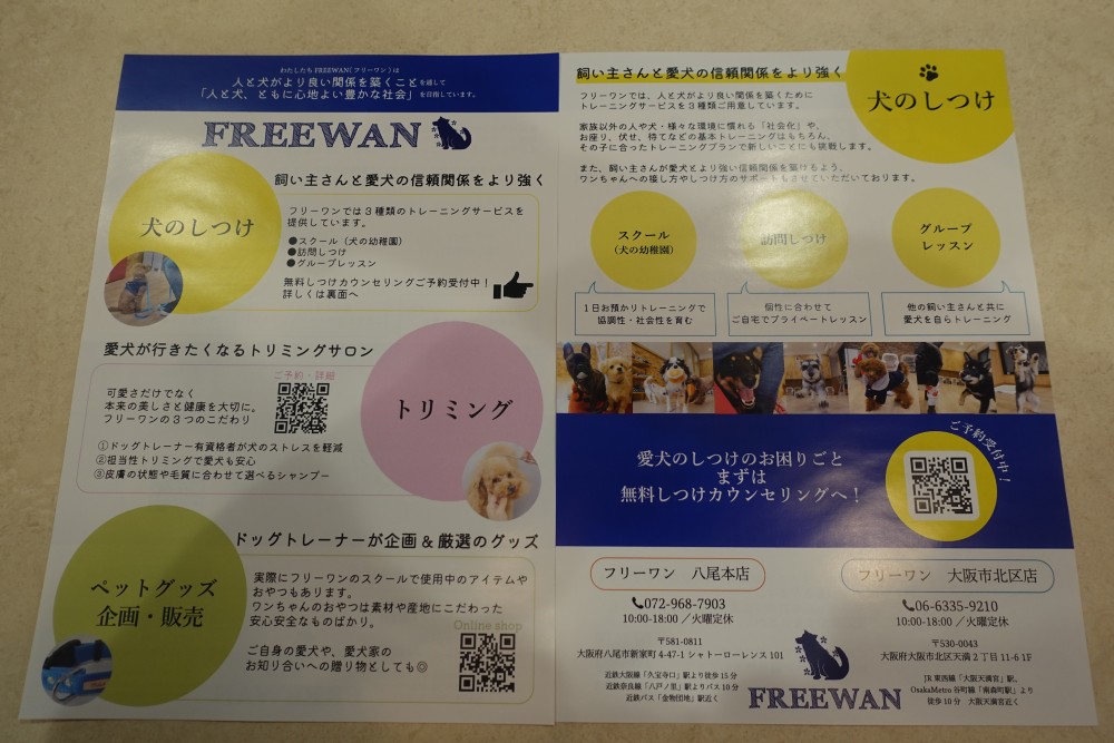 中身の内容などは、大きく変わりはないのですがトリミングの予約・詳細やオンラインショップ、犬のしつけの無料カウンセリングなどのQRコードがそれぞれついていたりして調べやすく見やすく変わりました📄☆彡