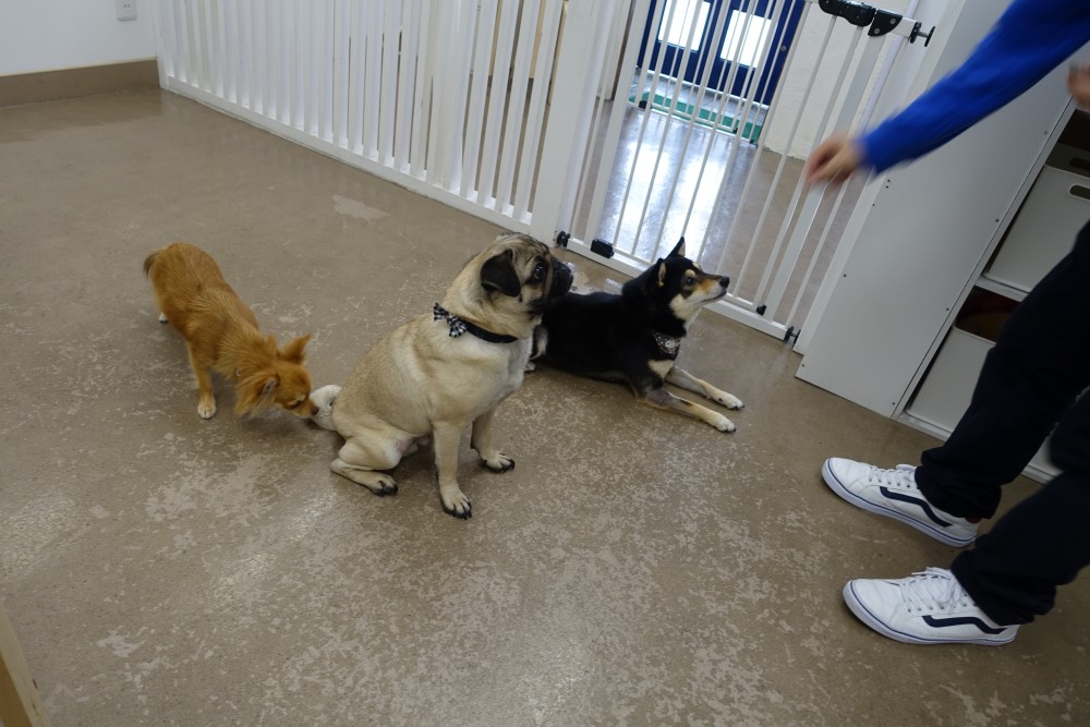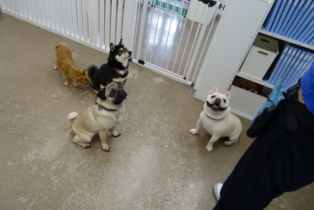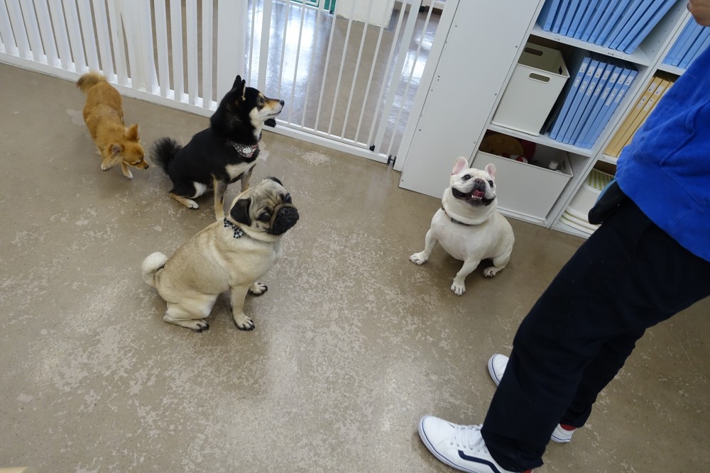スタッフとのコミュニケーションが楽しかったのか、そのままみんなでトレーニングにチャレンジしてもらうと、他の子を気にせずしっかり指示を聞いてくれていました♪