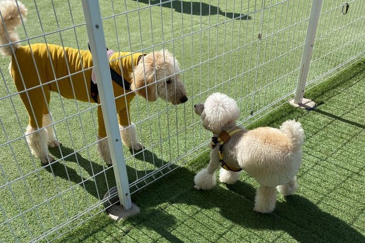 隣の大型犬スペースにスタンダードプードルちゃんがいてて興味津々🐶✨✨
