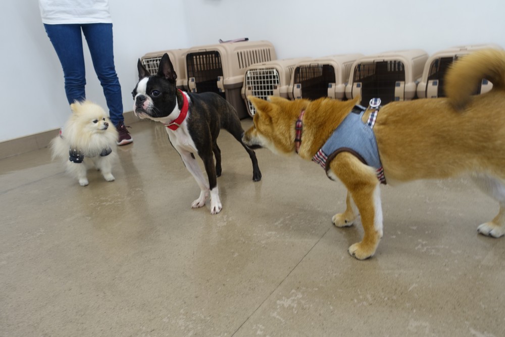 最初は少し戸惑いをもちつつ他のわんちゃんとふれあっていました。