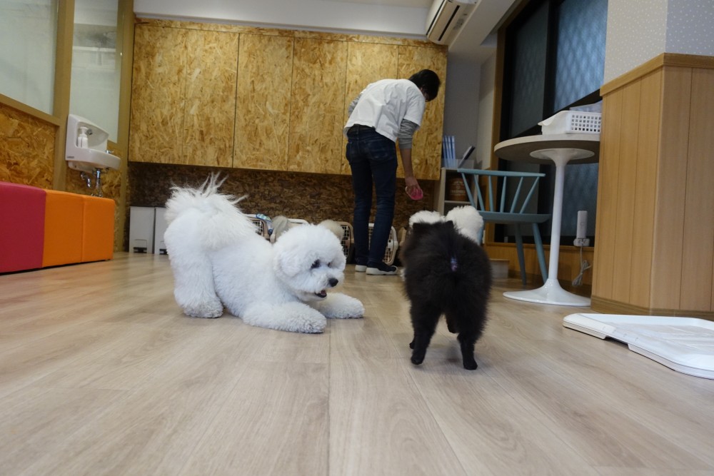 みんなの追いかけっこに混ざっていったり、構ってほしい子にバウポーズで遊びを誘います(/・ω・)/