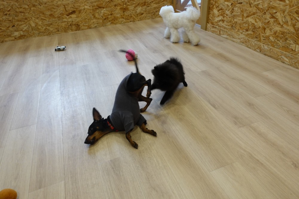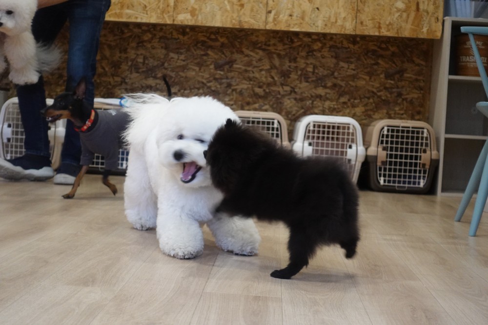 体格差がありますので、トレーナーが見ているところで遊んでもらっています♪