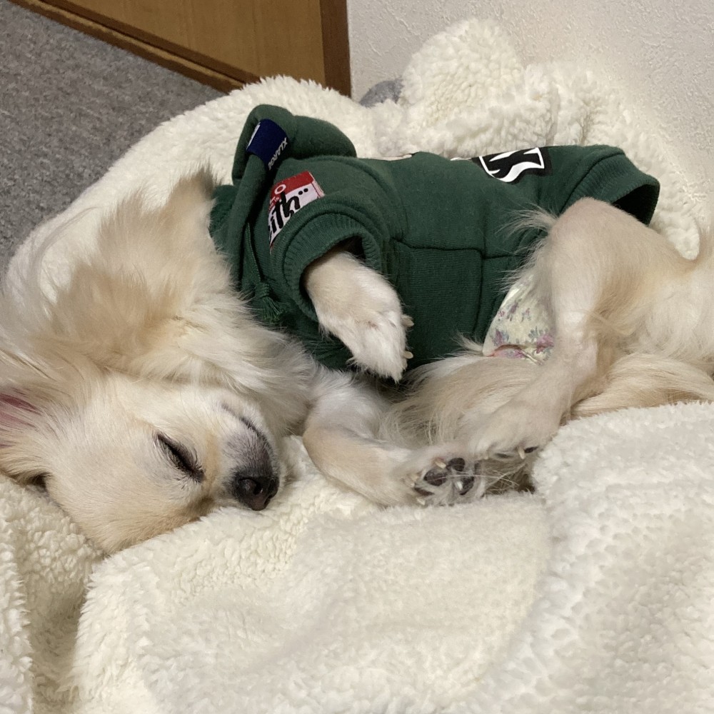 この写真は私の服の上で寝ている時に撮りました(笑)