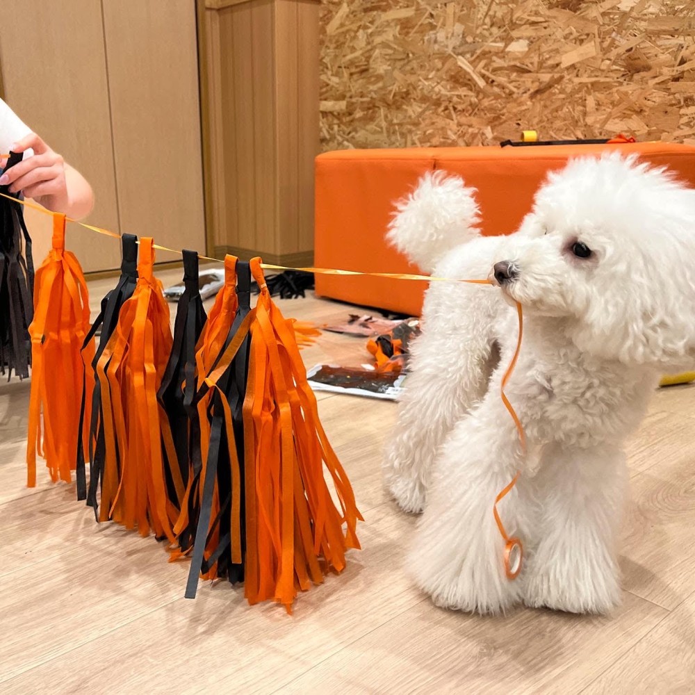 全体的にスタッフの服装などを気にする子たちはおらず(凄い!)、ワンちゃんたちにとっては「何かヒラヒラしているものが壁についてるな~、まあいっか!」という感じだったんですかね(笑)