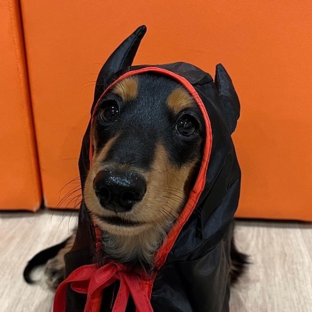 ハロウィンの仮装をしているスタッフ犬クレム(プードル)、ラズ(ダックス)です♪