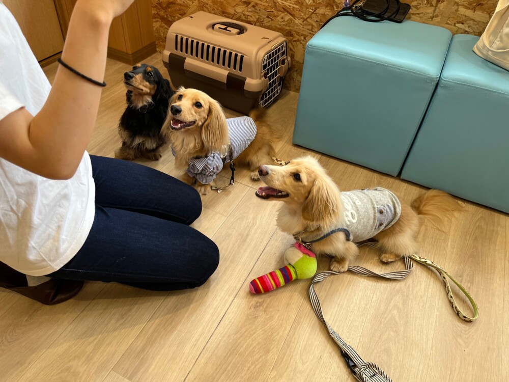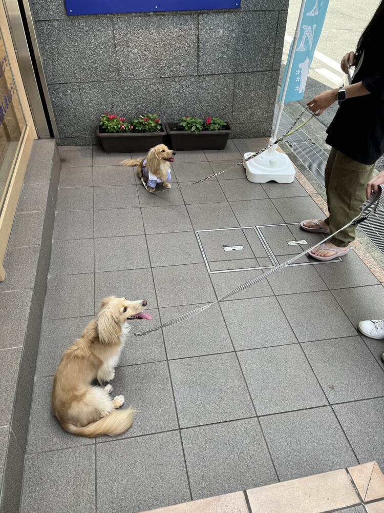室内よりも色んな匂いがしていたり、人やワンちゃんが通るので難しい環境ではありましたが頑張っていました^^