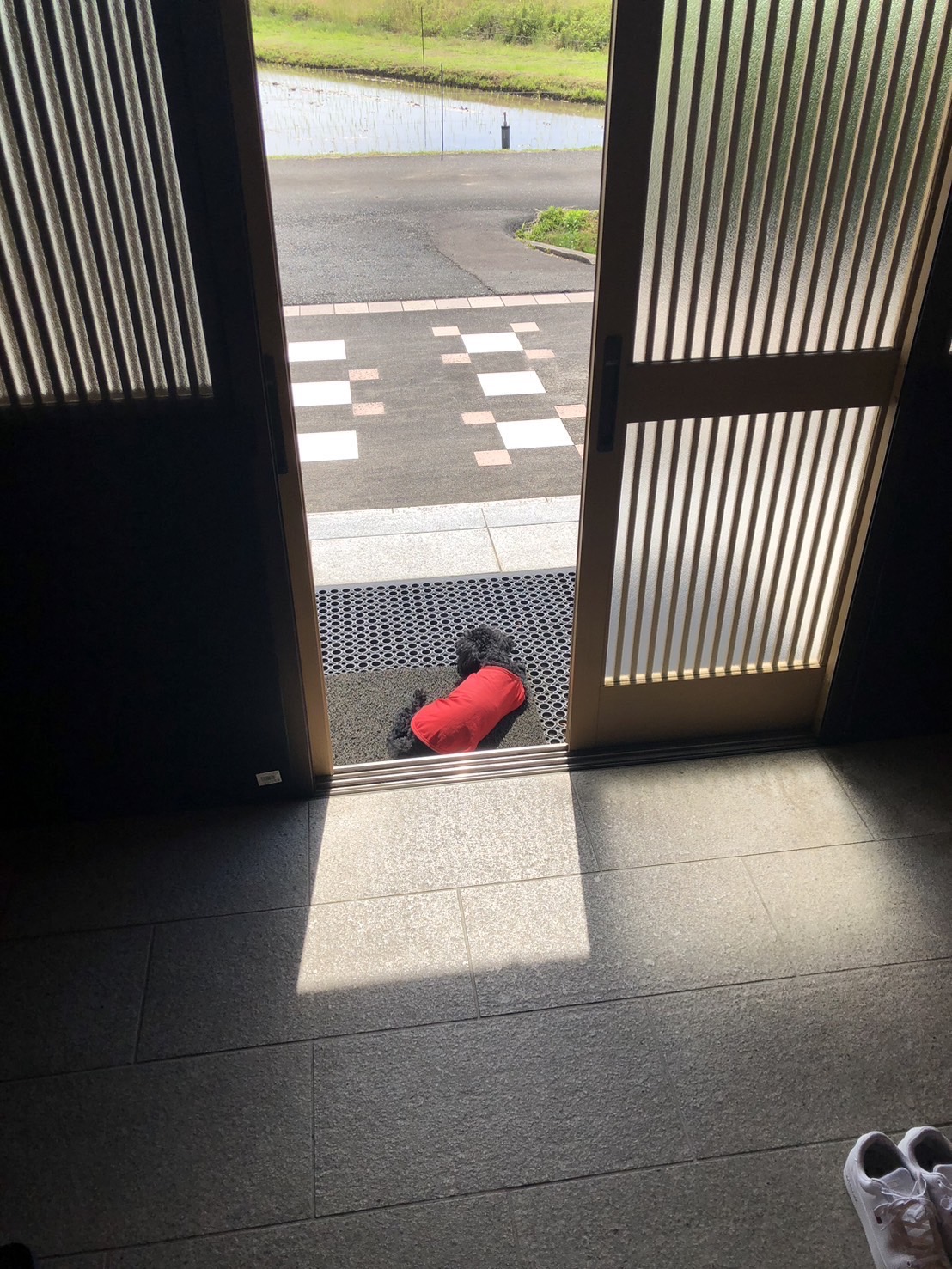 玄関前で日向ぼっこ中の写真です🐶💕