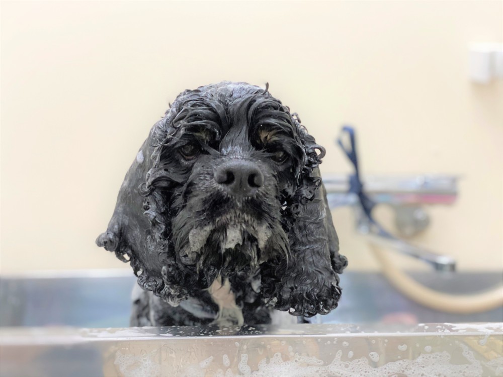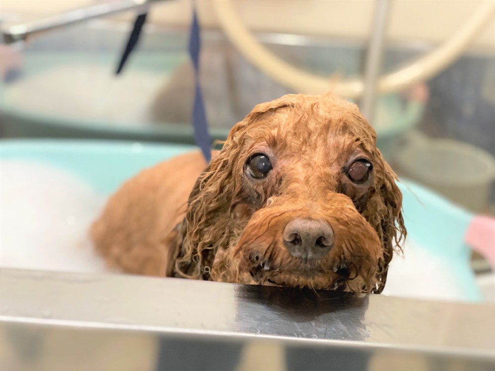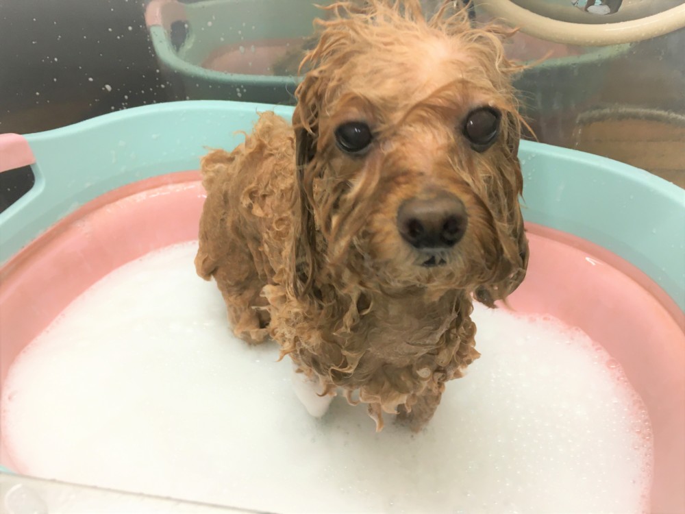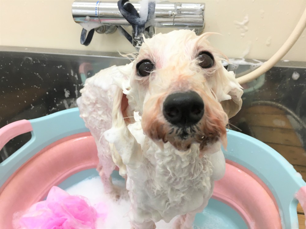シャンプー中のウーノくん